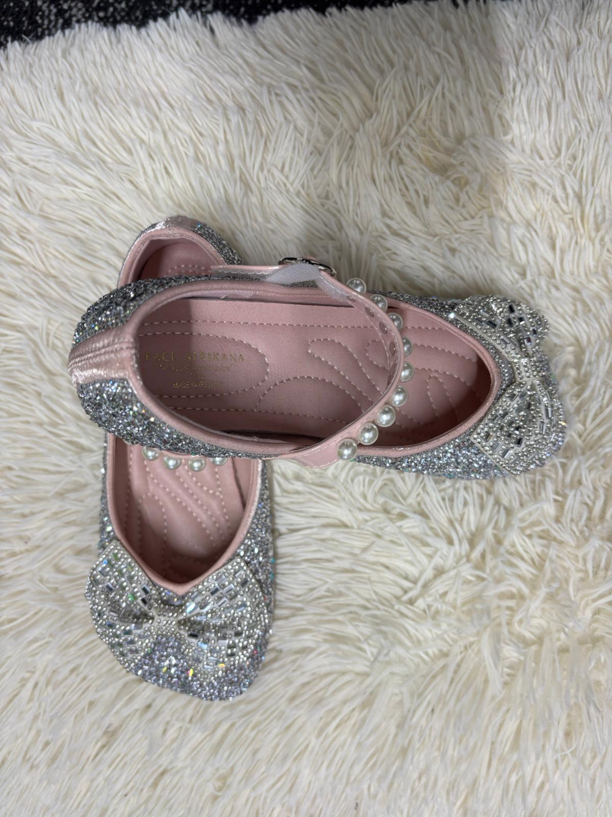 Crystal Bow Pearl Strap Girls’ Dress Shoes