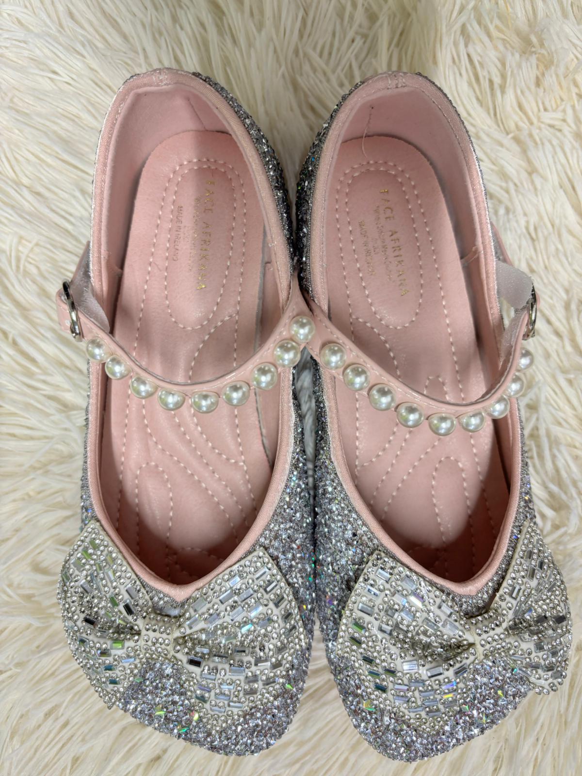 Elegant and sparkling, these dress shoes feature a dazzling crystal-embellished toe with a statement bow and a delicate pearl strap for added charm. Designed with a soft cushioned insole and secure fit, they are perfect for weddings, parties, and special occasions.