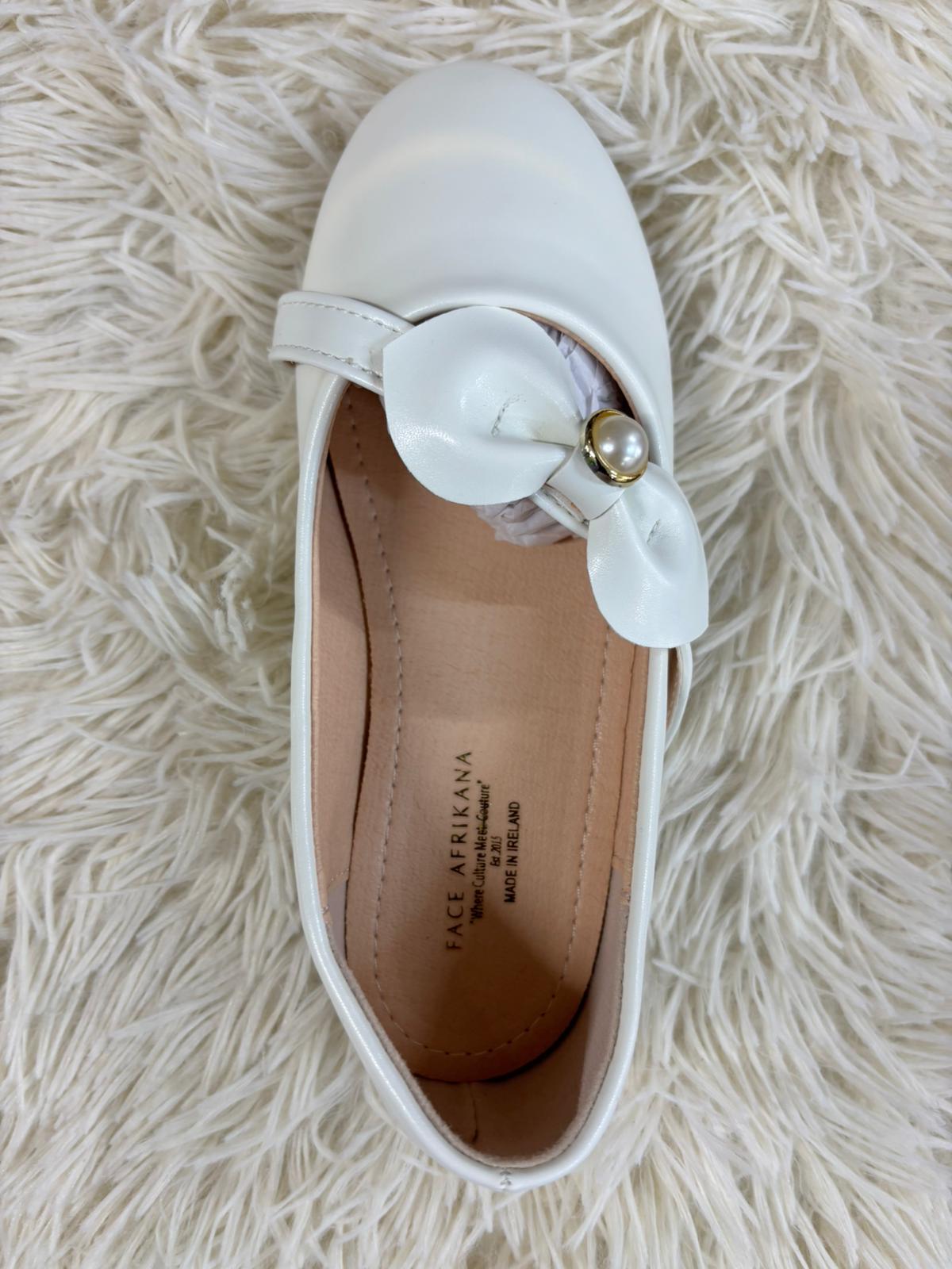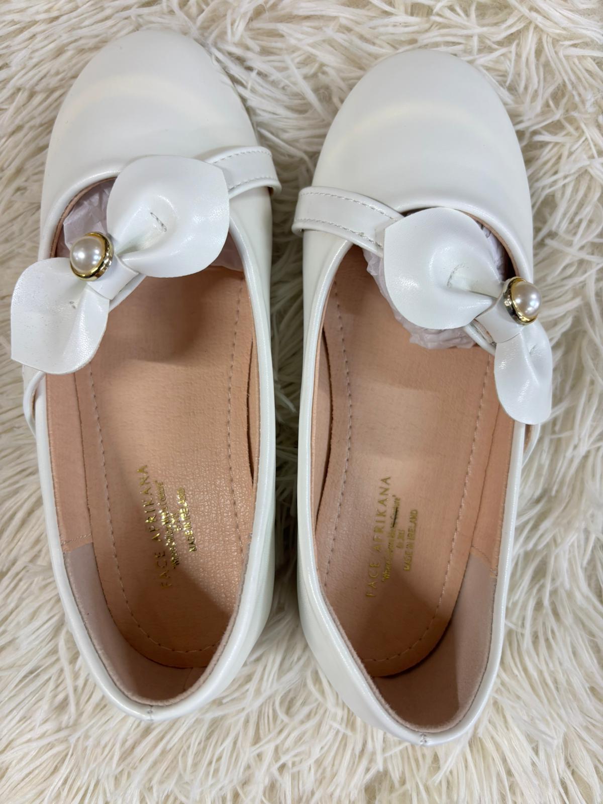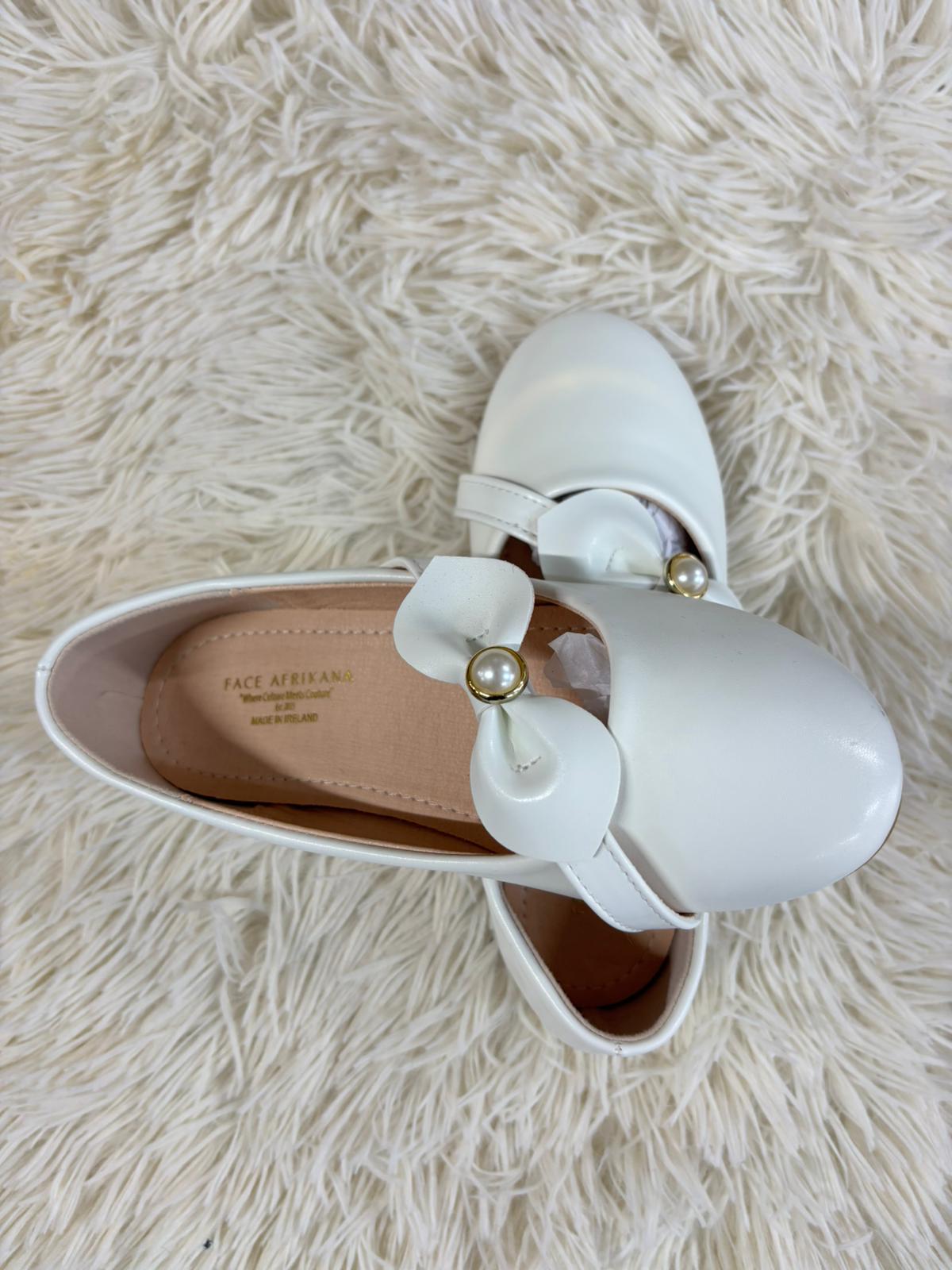 Simple with a touch of charm, these white flats feature a delicate floral detail accented with a pearl centerpiece. Designed with a smooth finish and cushioned insole, they offer comfort and elegance—perfect for everyday wear or special occasions.
