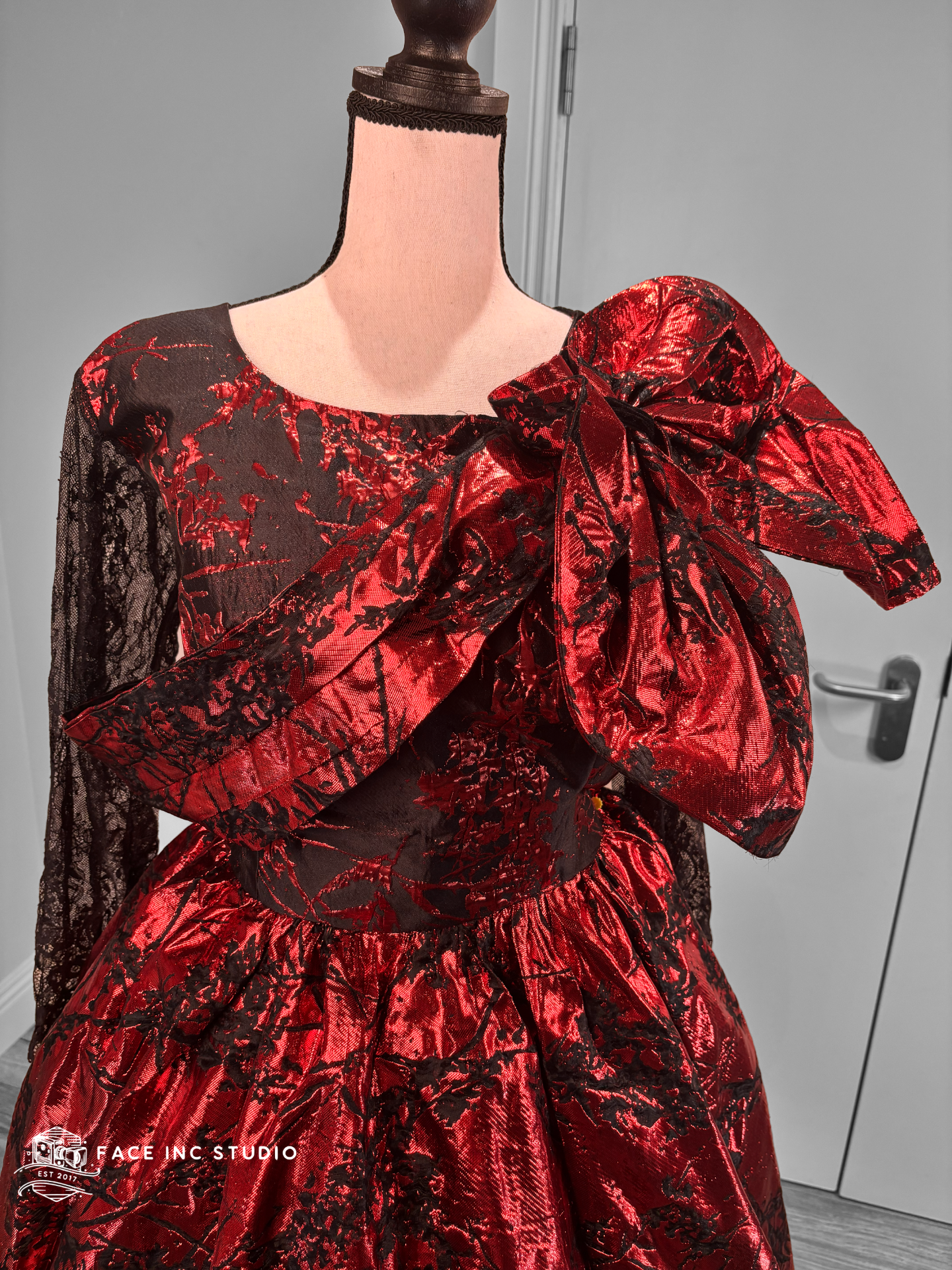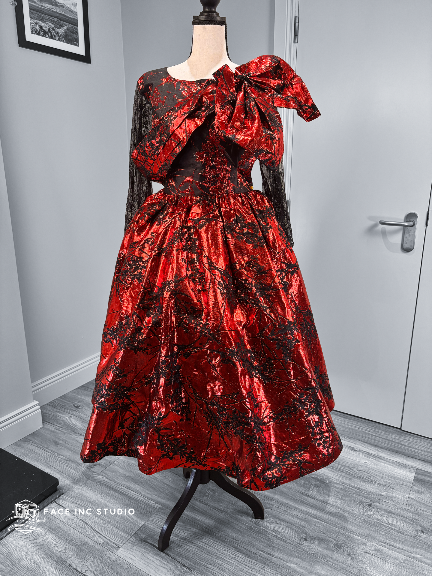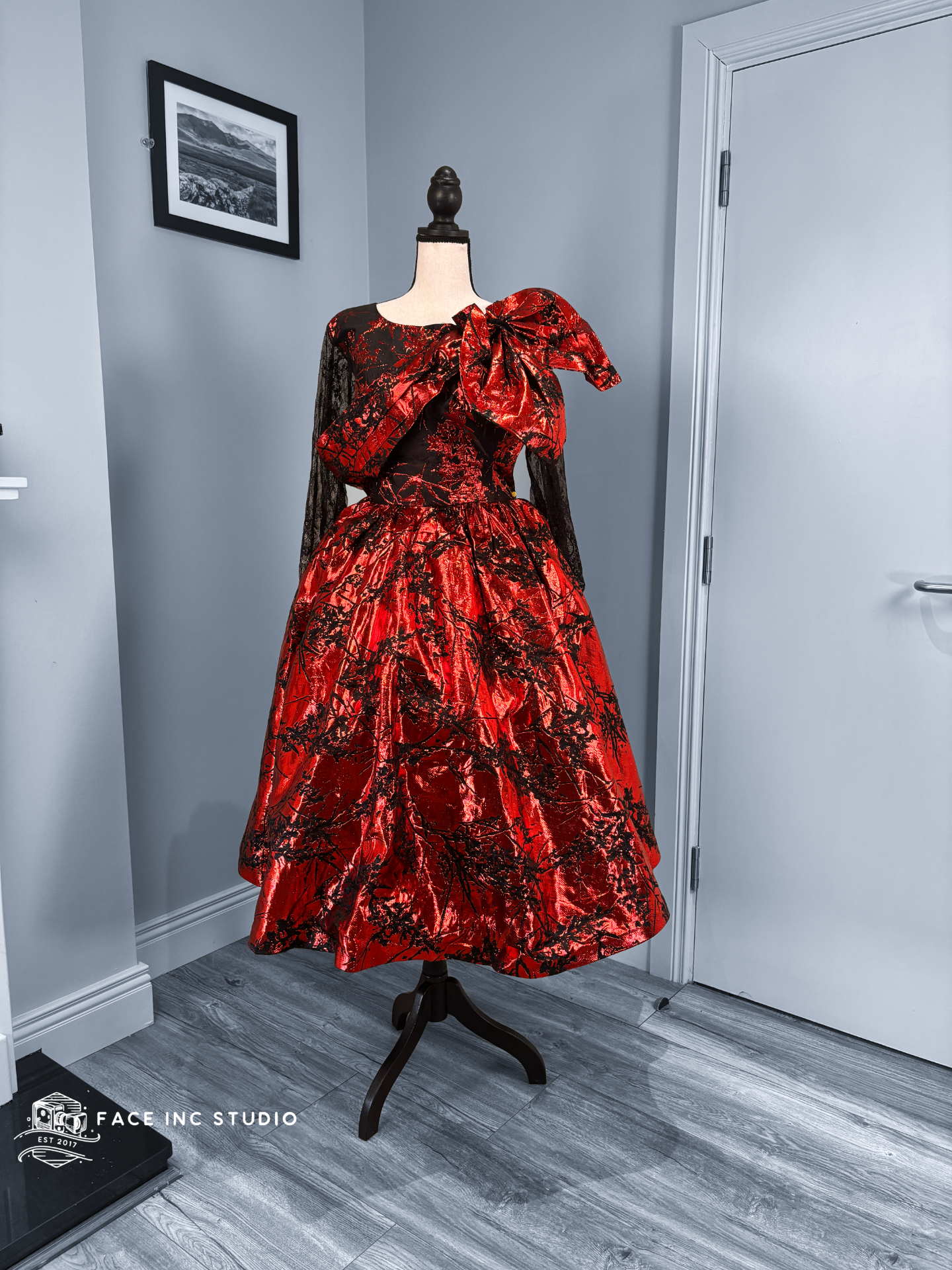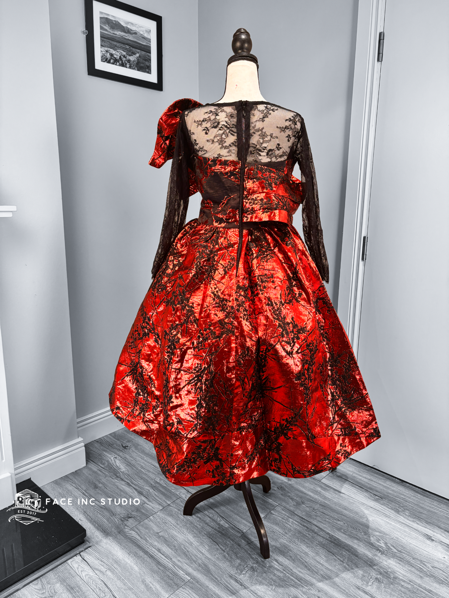 A touch of royalty This Red and Black Church Girl Brocade Damask Midi Dress brings elegance to every occasion. Perfect for weddings, ceremonies, and special events. Flattering fit. Luxurious finish. Pure statement.