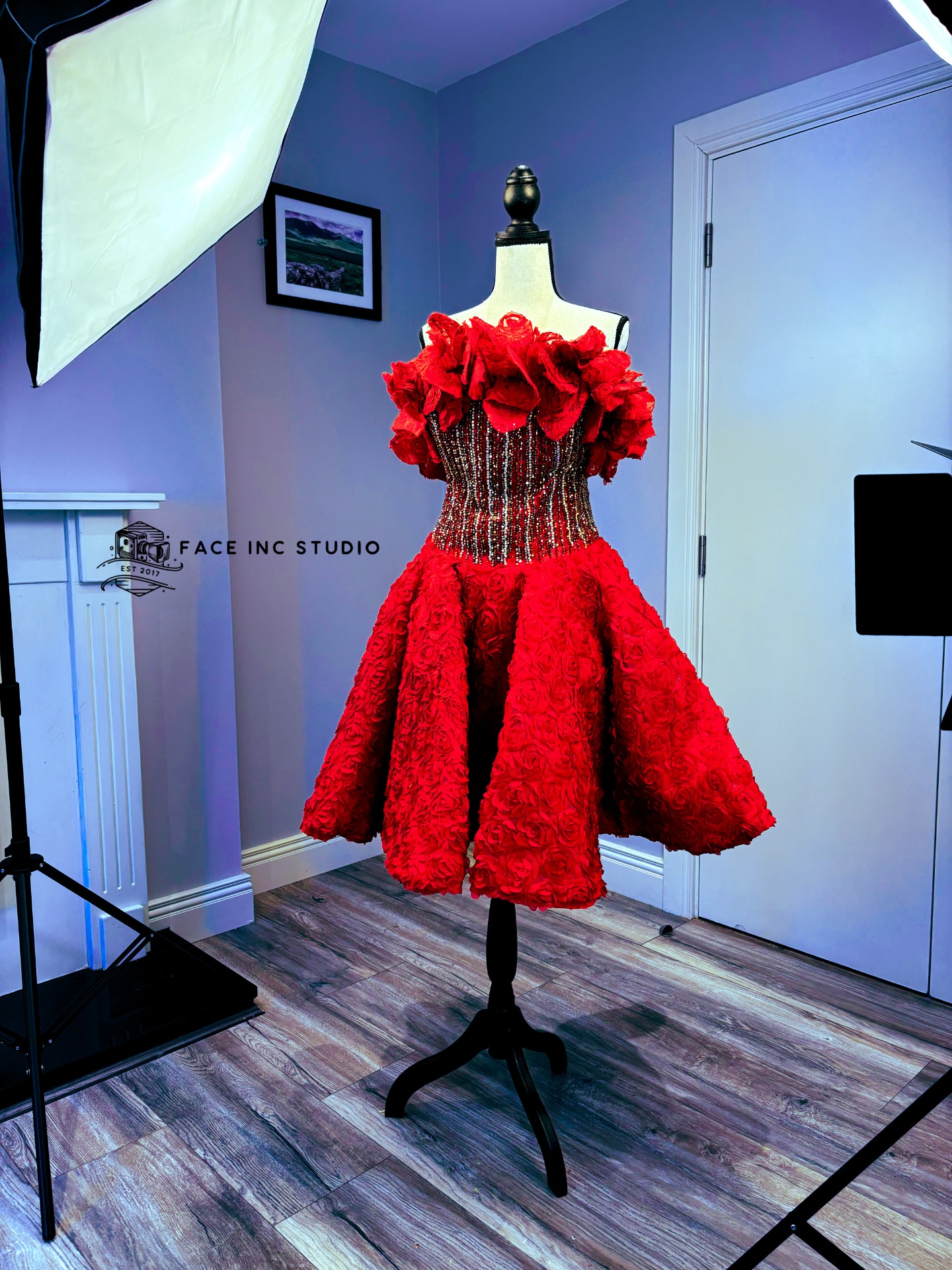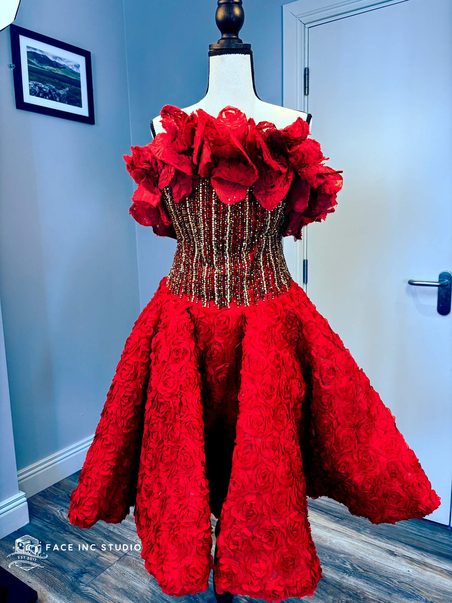 Make an unforgettable entrance in this luxurious red rose dress, featuring a hand-crafted floral bodice and a voluminous rosette down. Bold, romantic, and exquisitely detailed perfect for galas, photoshoots, and statement moments.. Watch the dress